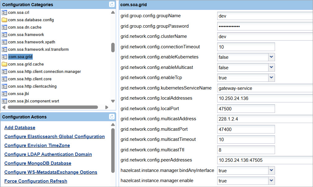 - In the Configuration Categories section, select com.soa.grid.